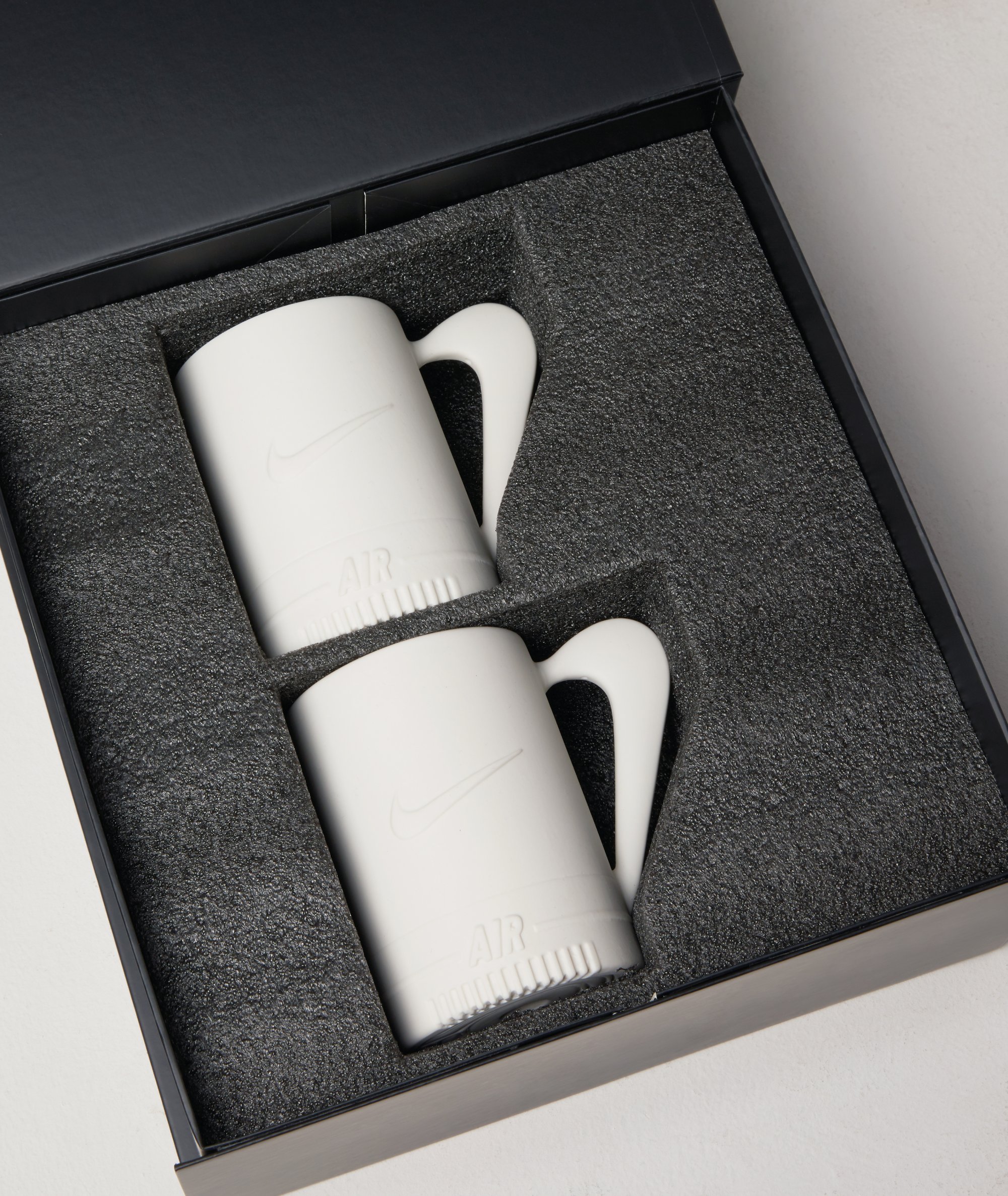 Featuring a handle constructed from the iconic swoosh, a midsole-inspired body, and a sole-printed base, the mug compresses multiple design elements into a single, cohesive form. Handmade in porcelain and fully functional, it exists at the intersection of product, sculpture, and utility.
