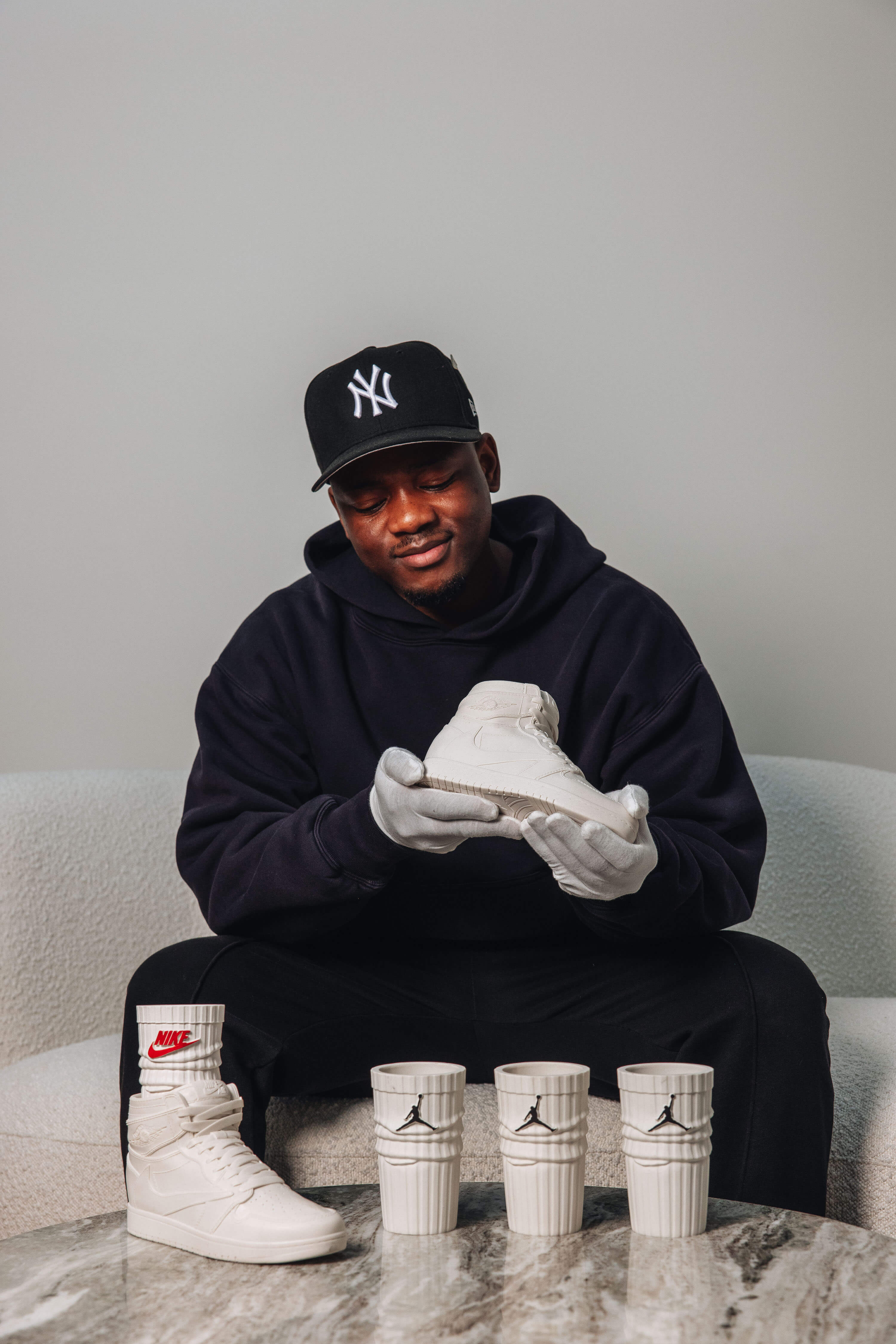 A functional sculptural object that merges sneaker culture with domestic space, pairing plant life with everyday garments to create a playful yet considered composition. The work reimagines familiar objects through a design-led lens, balancing humour, function, and form. Based on the iconic Air Jordan 4, the edition translates key design elements — including the original Nike Air heel branding — into a refined sculptural planter. Cast in white resin from a hand-sculpted model developed in VMU STUDIO, the piece preserves the silhouette while introducing a new purpose. Each edition stands at 22 cm and is presented as a set, comprising one sneaker planter and one sock element. Produced as part of the “Art of Living” series, the work reflects a core VMU principle: elevating everyday cultural symbols into collectible objects designed to live within real spaces.